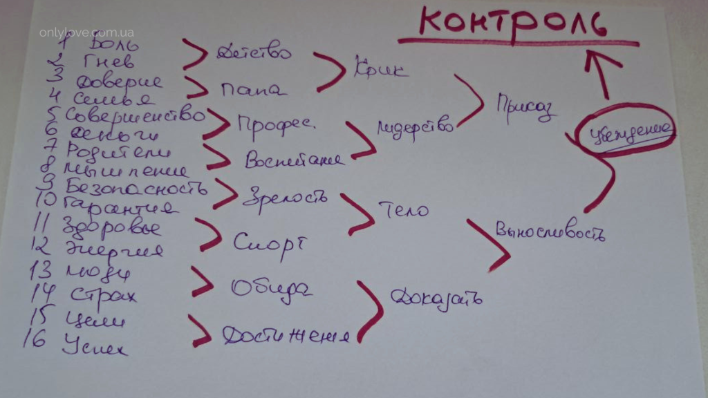 Например: «контроль», «деньги», «отношения», «страх» и т.д.